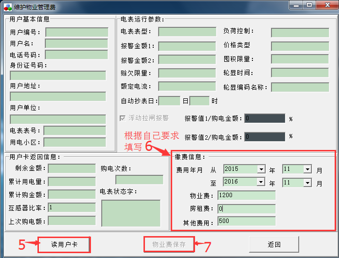 五、物業(yè)設(shè)置:(需要收取物業(yè)費用就設(shè)置,不需要此功能就直接忽略)。