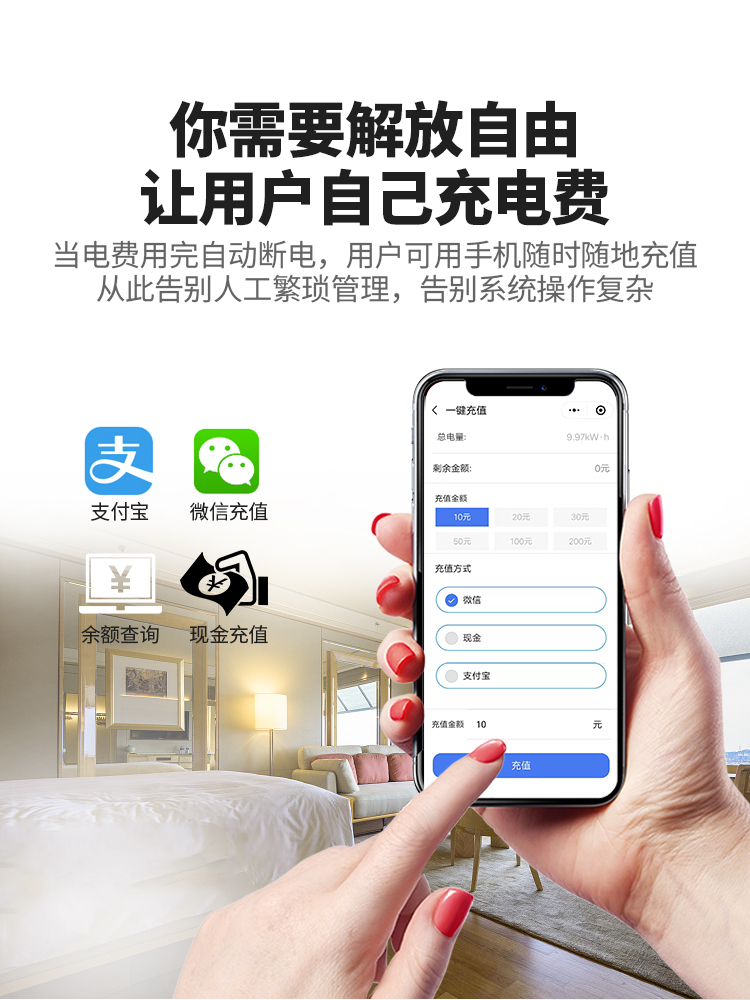 傳統(tǒng)的用電收費(fèi)方式需要統(tǒng)一抄表,然后回來計算電費(fèi),再上門收費(fèi)。勞動力大,耗時多,收費(fèi)難,有的業(yè)主古意拖欠電費(fèi),或上門經(jīng)常碰到業(yè)主。以及后來更為科學(xué)一些的插卡式電表也存在諸多缺點:業(yè)主的購電卡易丟失,充值需要到物業(yè)管理處,需要配備專門的充值電費(fèi)的管理人員。